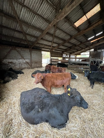 Wir halten ca. 70 Angusrinder in Mutterkuhhaltung, bauen verschiedene Kartoffelsorten, Karotten und diverses Getreide in höchster Qualität an. Außerdem gehören unser Hund Lotta, Katzen, Hasen, Schafe und unsere zwei Ponys Sunny & Flocke zu uns.
